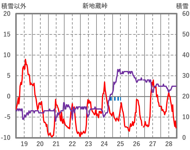 | 日 | 時 | 気温 | 降水 | 風向/風速 | 日照 | 積雪 | 降雪 |