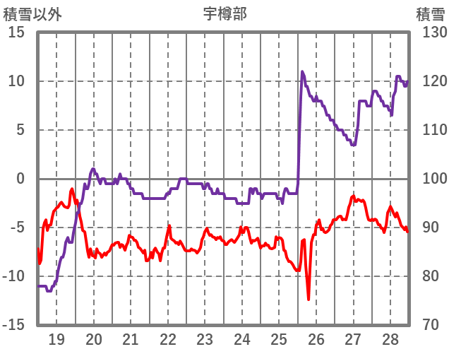 | 日 | 時 | 気温 | 降水 | 風向/風速 | 日照 | 積雪 | 降雪 |