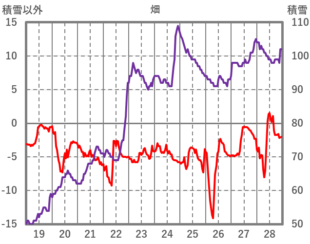 | 日 | 時 | 気温 | 降水 | 風向/風速 | 日照 | 積雪 | 降雪 |