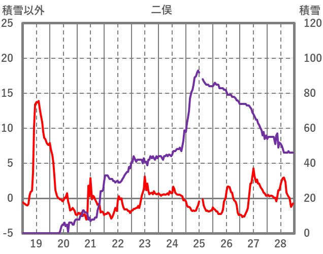 | 日 | 時 | 気温 | 降水 | 風向/風速 | 日照 | 積雪 | 降雪 |