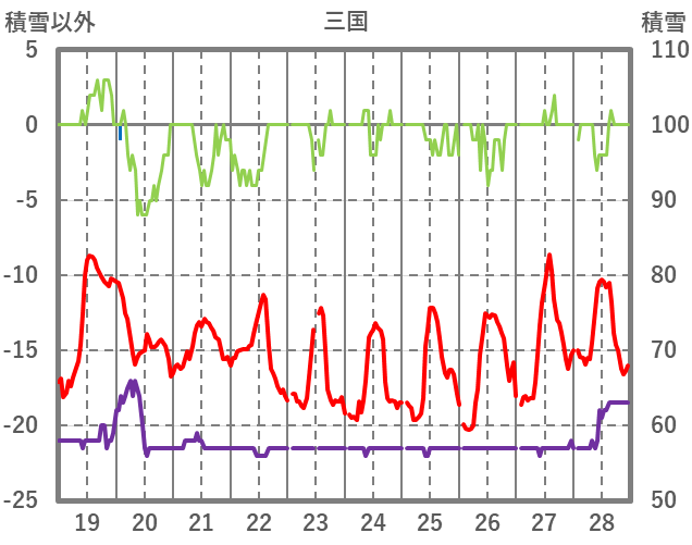 | 日 | 時 | 気温 | 降水 | 風向/風速 | 日照 | 積雪 | 降雪 |