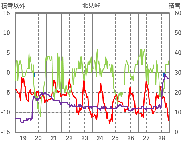 | 日 | 時 | 気温 | 降水 | 風向/風速 | 日照 | 積雪 | 降雪 |