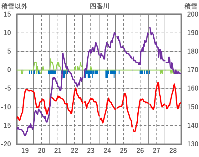 | 日 | 時 | 気温 | 降水 | 風向/風速 | 日照 | 積雪 | 降雪 |