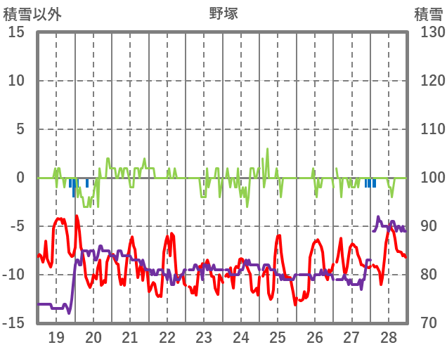 | 日 | 時 | 気温 | 降水 | 風向/風速 | 日照 | 積雪 | 降雪 |