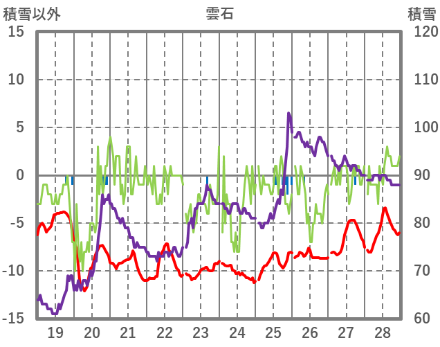 | 日 | 時 | 気温 | 降水 | 風向/風速 | 日照 | 積雪 | 降雪 |
