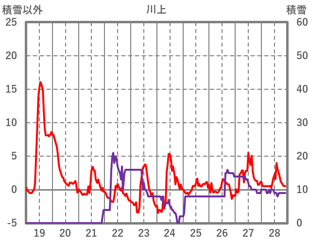 | 日 | 時 | 気温 | 降水 | 風向/風速 | 日照 | 積雪 | 降雪 |