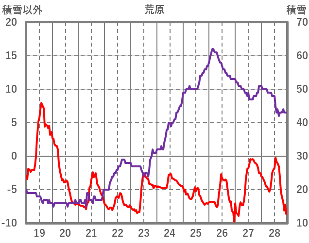 | 日 | 時 | 気温 | 降水 | 風向/風速 | 日照 | 積雪 | 降雪 |