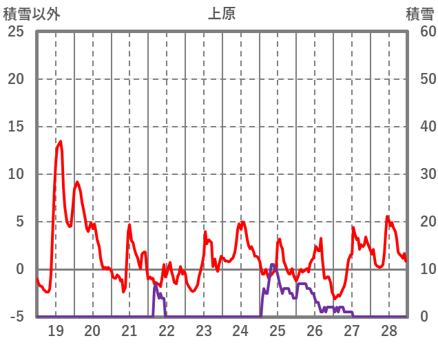 | 日 | 時 | 気温 | 降水 | 風向/風速 | 日照 | 積雪 | 降雪 |