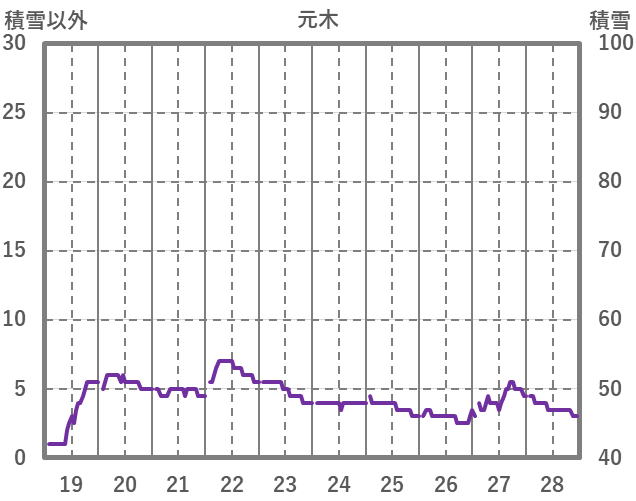 | 日 | 時 | 気温 | 降水 | 風向/風速 | 日照 | 積雪 | 降雪 |