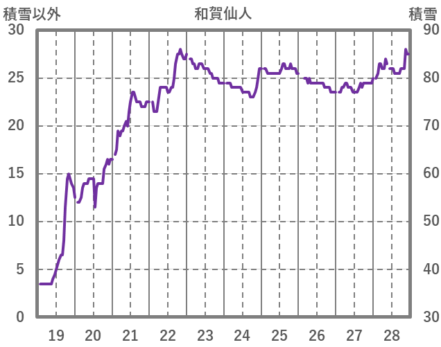 | 日 | 時 | 気温 | 降水 | 風向/風速 | 日照 | 積雪 | 降雪 |