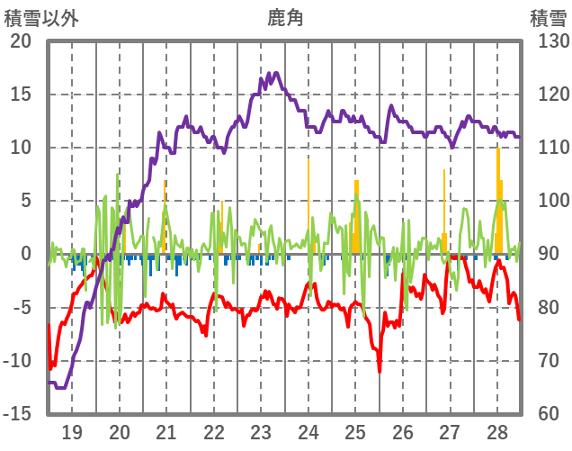 | 日 | 時 | 気温 | 降水 | 風向/風速 | 日照 | 積雪 | 降雪 |