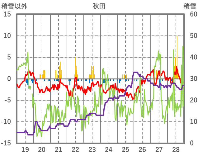 | 日 | 時 | 気温 | 降水 | 風向/風速 | 日照 | 積雪 | 降雪 |