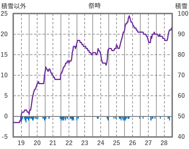 | 日 | 時 | 気温 | 降水 | 風向/風速 | 日照 | 積雪 | 降雪 |