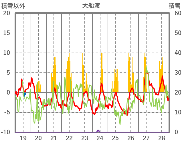 | 日 | 時 | 気温 | 降水 | 風向/風速 | 日照 | 積雪 | 降雪 |
