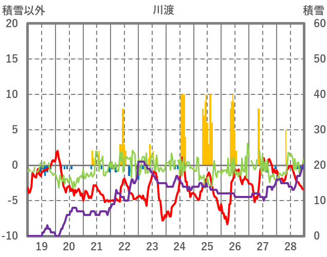 | 日 | 時 | 気温 | 降水 | 風向/風速 | 日照 | 積雪 | 降雪 |