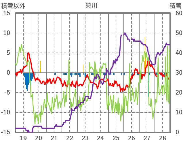 | 日 | 時 | 気温 | 降水 | 風向/風速 | 日照 | 積雪 | 降雪 |