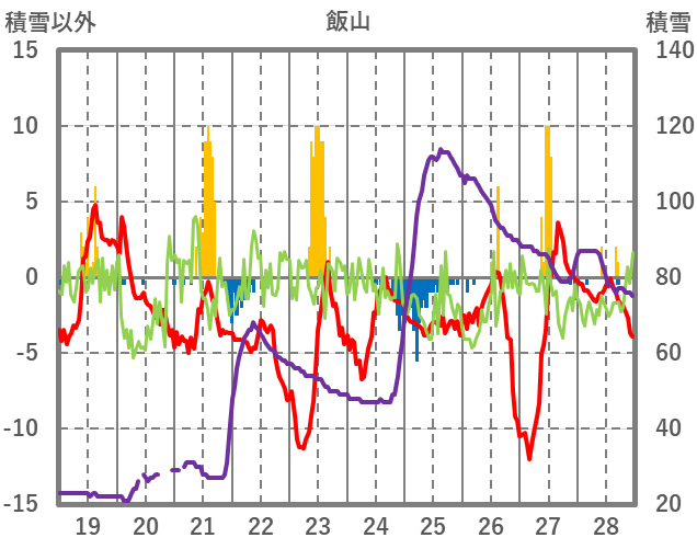 | 日 | 時 | 気温 | 降水 | 風向/風速 | 日照 | 積雪 | 降雪 |