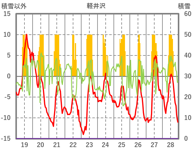| 日 | 時 | 気温 | 降水 | 風向/風速 | 日照 | 積雪 | 降雪 |
