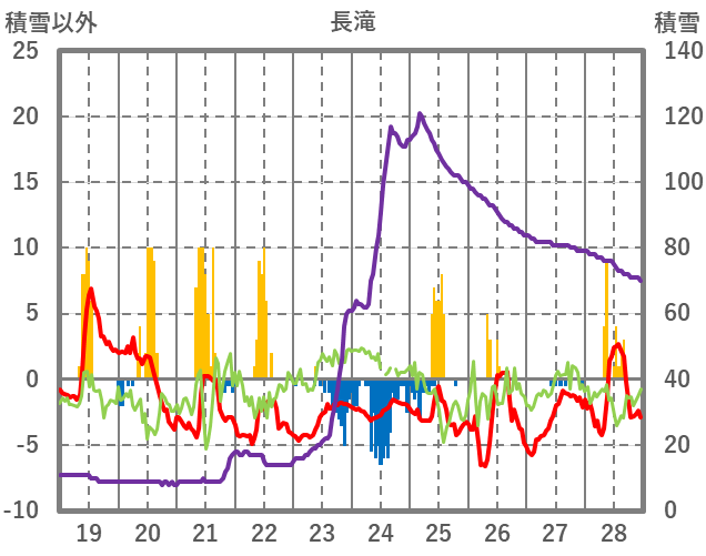 | 日 | 時 | 気温 | 降水 | 風向/風速 | 日照 | 積雪 | 降雪 |
