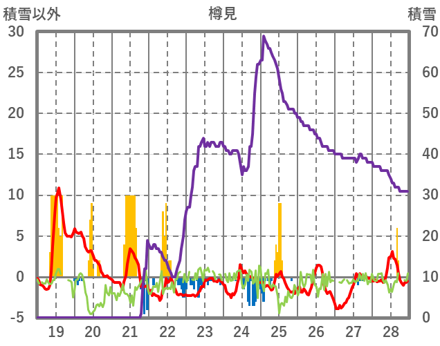| 日 | 時 | 気温 | 降水 | 風向/風速 | 日照 | 積雪 | 降雪 |