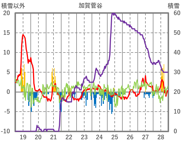 | 日 | 時 | 気温 | 降水 | 風向/風速 | 日照 | 積雪 | 降雪 |