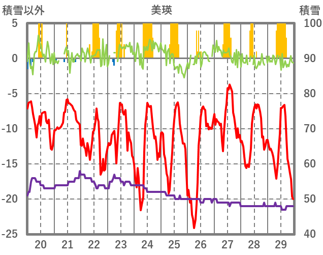 | 日 | 時 | 気温 | 降水 | 風向/風速 | 日照 | 積雪 | 降雪 |