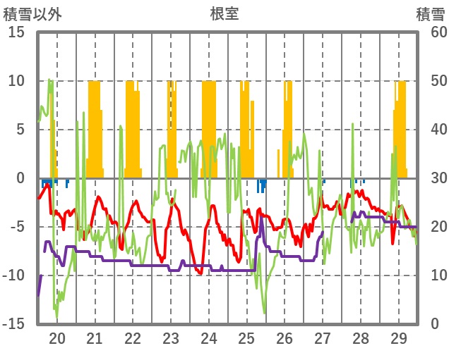 | 日 | 時 | 気温 | 降水 | 風向/風速 | 日照 | 積雪 | 降雪 |