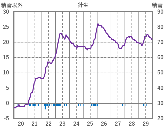 | 日 | 時 | 気温 | 降水 | 風向/風速 | 日照 | 積雪 | 降雪 |