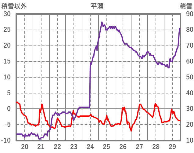 | 日 | 時 | 気温 | 降水 | 風向/風速 | 日照 | 積雪 | 降雪 |