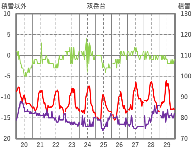 | 日 | 時 | 気温 | 降水 | 風向/風速 | 日照 | 積雪 | 降雪 |
