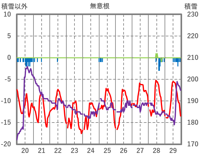 | 日 | 時 | 気温 | 降水 | 風向/風速 | 日照 | 積雪 | 降雪 |