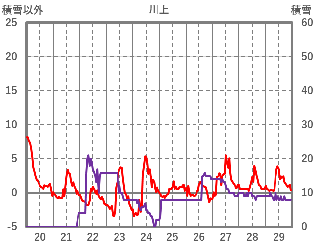 | 日 | 時 | 気温 | 降水 | 風向/風速 | 日照 | 積雪 | 降雪 |