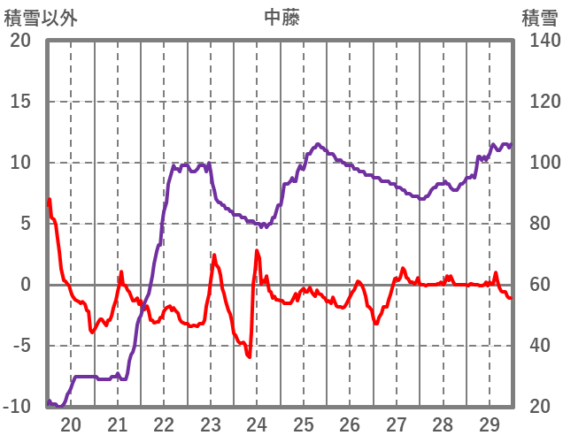 | 日 | 時 | 気温 | 降水 | 風向/風速 | 日照 | 積雪 | 降雪 |