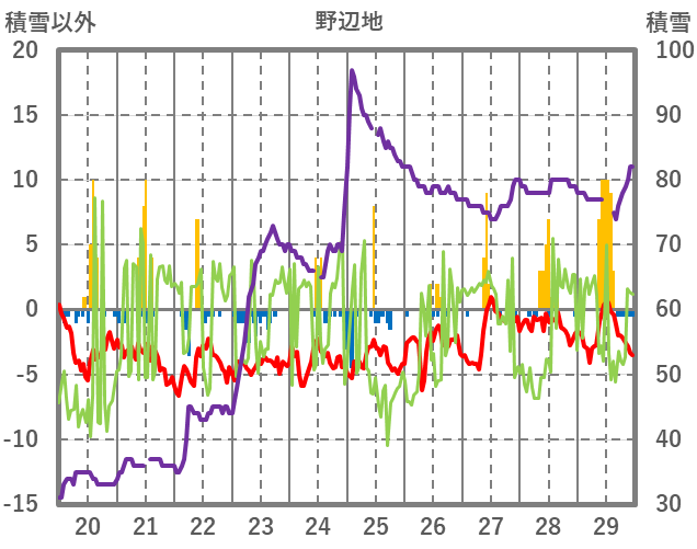 | 日 | 時 | 気温 | 降水 | 風向/風速 | 日照 | 積雪 | 降雪 |