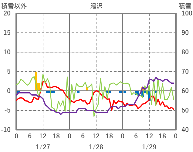 | 日 | 時 | 気温 | 降水 | 風向/風速 | 日照 | 積雪 | 降雪 |