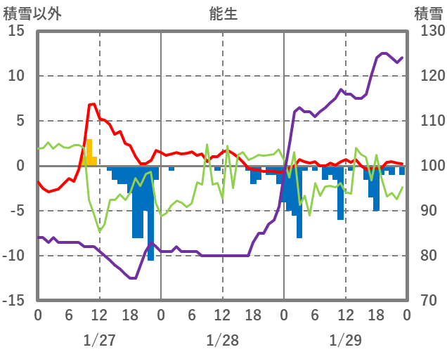 | 日 | 時 | 気温 | 降水 | 風向/風速 | 日照 | 積雪 | 降雪 |