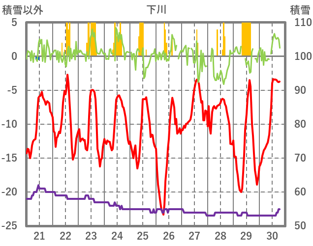 | 日 | 時 | 気温 | 降水 | 風向/風速 | 日照 | 積雪 | 降雪 |