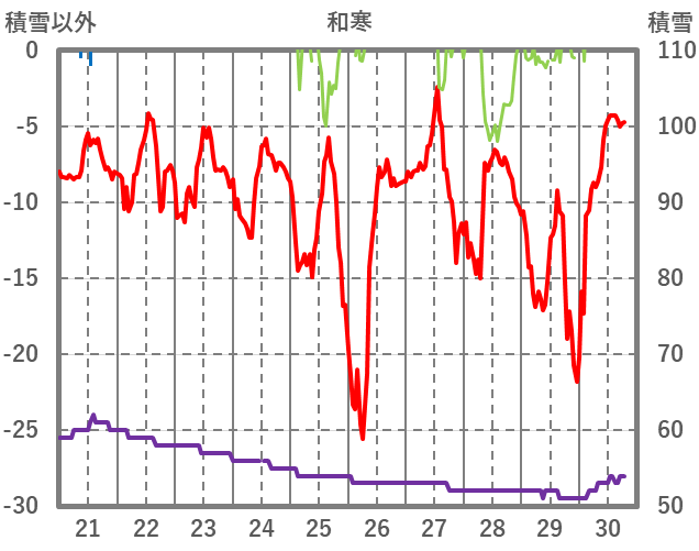 | 日 | 時 | 気温 | 降水 | 風向/風速 | 日照 | 積雪 | 降雪 |