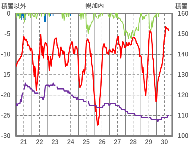 | 日 | 時 | 気温 | 降水 | 風向/風速 | 日照 | 積雪 | 降雪 |