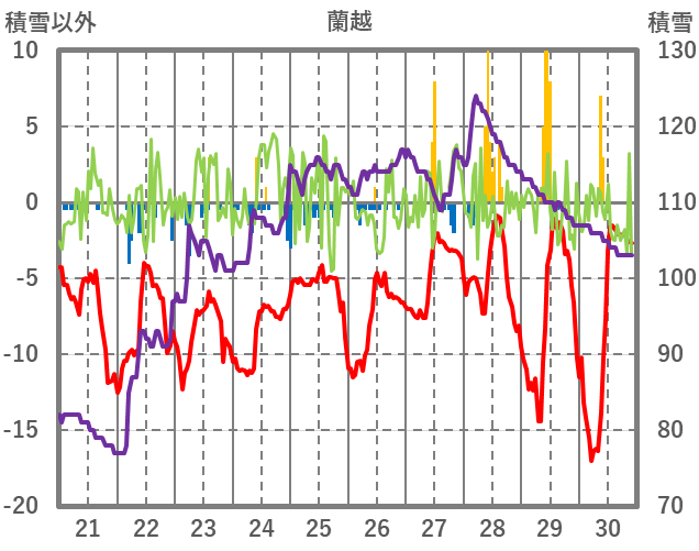 | 日 | 時 | 気温 | 降水 | 風向/風速 | 日照 | 積雪 | 降雪 |