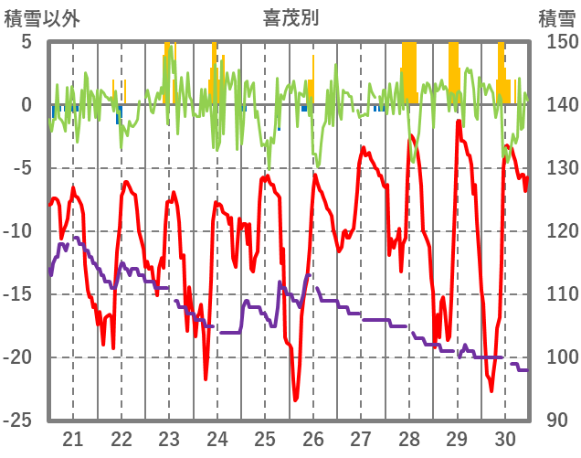 | 日 | 時 | 気温 | 降水 | 風向/風速 | 日照 | 積雪 | 降雪 |