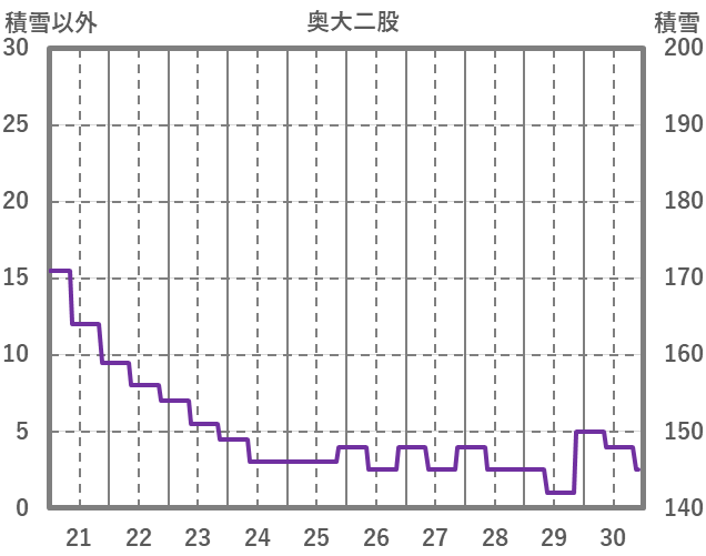 | 日 | 時 | 気温 | 降水 | 風向/風速 | 日照 | 積雪 | 降雪 |