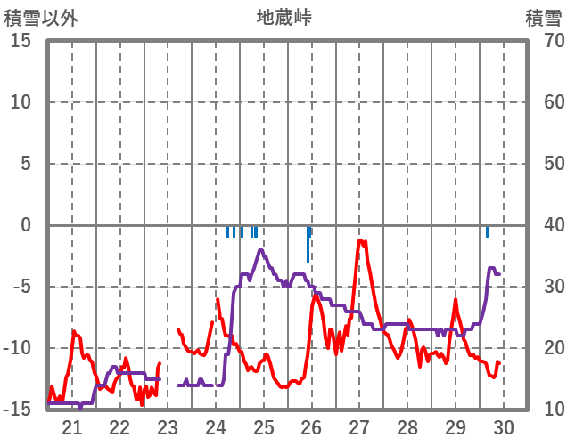 | 日 | 時 | 気温 | 降水 | 風向/風速 | 日照 | 積雪 | 降雪 |