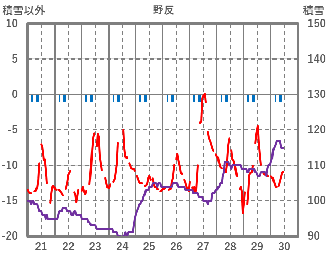 | 日 | 時 | 気温 | 降水 | 風向/風速 | 日照 | 積雪 | 降雪 |