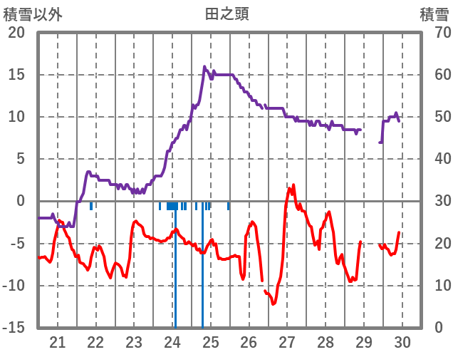| 日 | 時 | 気温 | 降水 | 風向/風速 | 日照 | 積雪 | 降雪 |