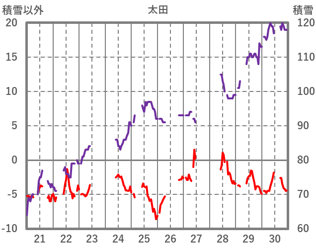 | 日 | 時 | 気温 | 降水 | 風向/風速 | 日照 | 積雪 | 降雪 |