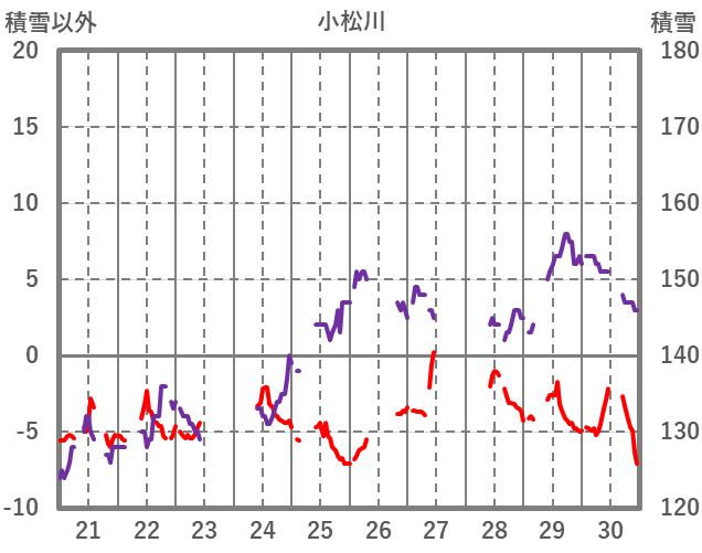 | 日 | 時 | 気温 | 降水 | 風向/風速 | 日照 | 積雪 | 降雪 |