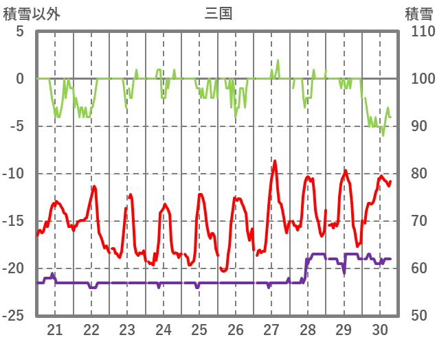 | 日 | 時 | 気温 | 降水 | 風向/風速 | 日照 | 積雪 | 降雪 |