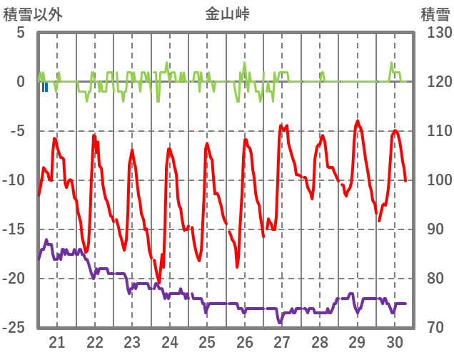 | 日 | 時 | 気温 | 降水 | 風向/風速 | 日照 | 積雪 | 降雪 |