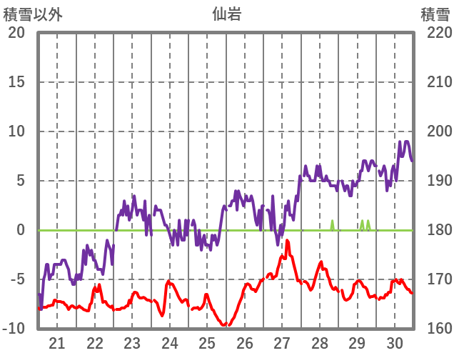 | 日 | 時 | 気温 | 降水 | 風向/風速 | 日照 | 積雪 | 降雪 |